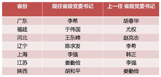 七省市省級黨委書記調整