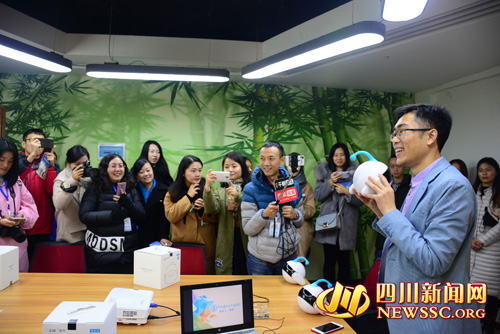 四川新聞網(wǎng)南充12月11日訊(記者周鴻攝影報(bào)道)“我們一起出去玩吧!”“好!”今天上午,在南充高新孵化園里,“聚焦‘155’戰(zhàn)略見(jiàn)證大城崛起”2017年全國(guó)網(wǎng)絡(luò)媒體采訪團(tuán)對(duì)這個(gè)可與人類對(duì)話的圓形機(jī)器人十分感興趣。“太可愛(ài)了!