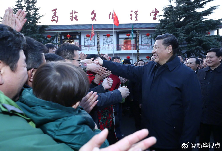 新華網(wǎng)北京12月12日電 12日下午,正在徐州考察的習(xí)近平總書記走進(jìn)馬莊村黨員活動(dòng)室,與正在學(xué)習(xí)黨的十九大精神的黨員們親切交流。習(xí)近平說,剛才在村史館看到你們村班子很穩(wěn)定,說明村干部獲得了村民的支持。農(nóng)村要發(fā)展好,很重要的一點(diǎn)就是要有好班子和好帶頭人,希望大家在十九大精神指引下把村兩委班子建設(shè)得更強(qiáng)。