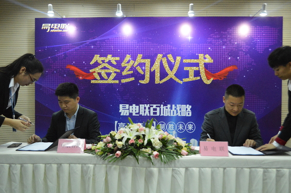 圖為易電聯(lián)和代理商合作簽約現(xiàn)場(chǎng)。