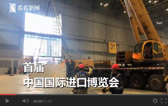 首屆中國國際進口博覽會最大的展品,金牛座龍門銑床今天龍門構架完成,預計下周二整個設備將完成安裝。