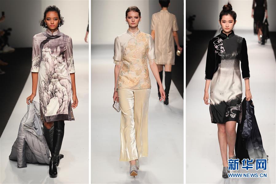 在2018年3月28日至4月3日舉行的2018秋冬上海時(shí)裝周期間,刺繡、盤(pán)扣、水墨等中國(guó)傳統(tǒng)服飾元素和文化符號(hào)出現(xiàn)在多個(gè)品牌時(shí)裝發(fā)布會(huì)上,成為本屆時(shí)裝周的亮點(diǎn)。(新華社記者 杜瀟逸 攝)