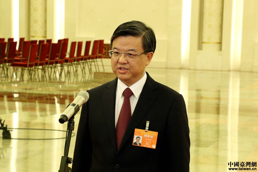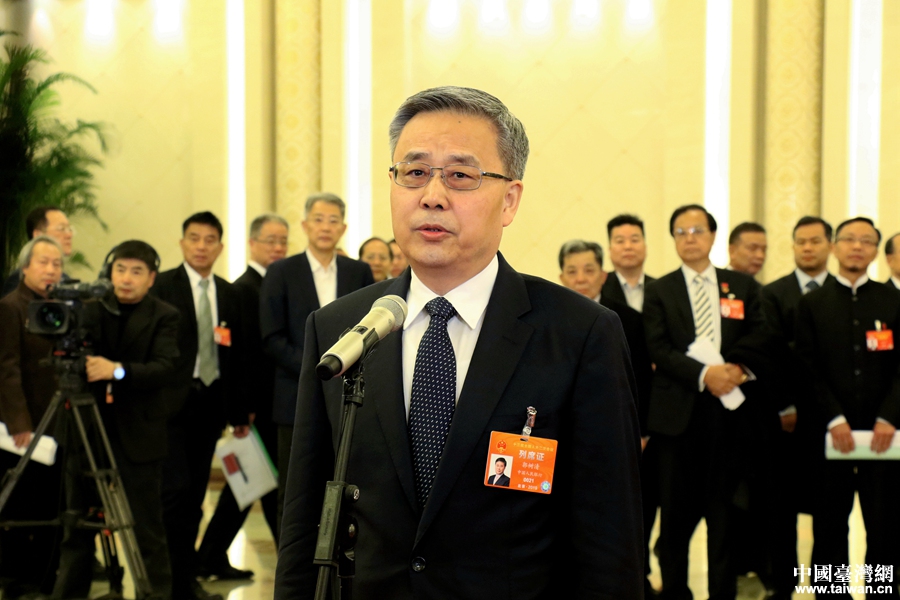 中共中央臺辦、國務院臺辦主任劉結一在“部長通道”接受采訪。(中國臺灣網 尹賽楠 攝)