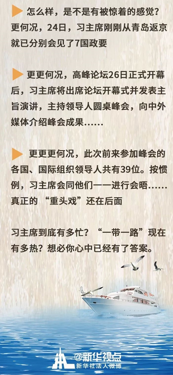高峰論壇開幕前,習主席的“忙碌指數”再次刷新紀錄