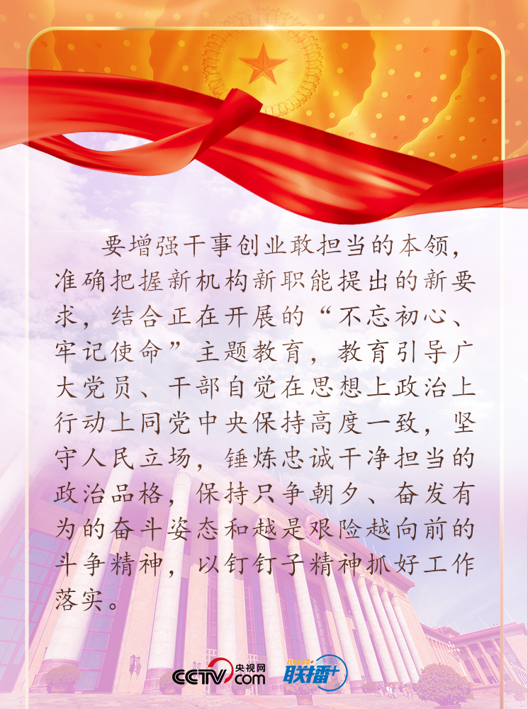 黨的十九屆三中全會閉幕后,短短一年多時間,十九屆三中全會部署的改革任務(wù)總體完成,取得一系列重要理論成果、制度成果、實(shí)踐成果。但是,完成組織架構(gòu)重建、實(shí)現(xiàn)機(jī)構(gòu)職能調(diào)整,只是解決了“面”上的問題,真正要發(fā)生“化學(xué)反應(yīng)”,還有大量工作要做。在這次會議上,習(xí)近平又提出哪些新的要求?央視網(wǎng)《聯(lián)播+》推出圖解為您劃重點(diǎn)。