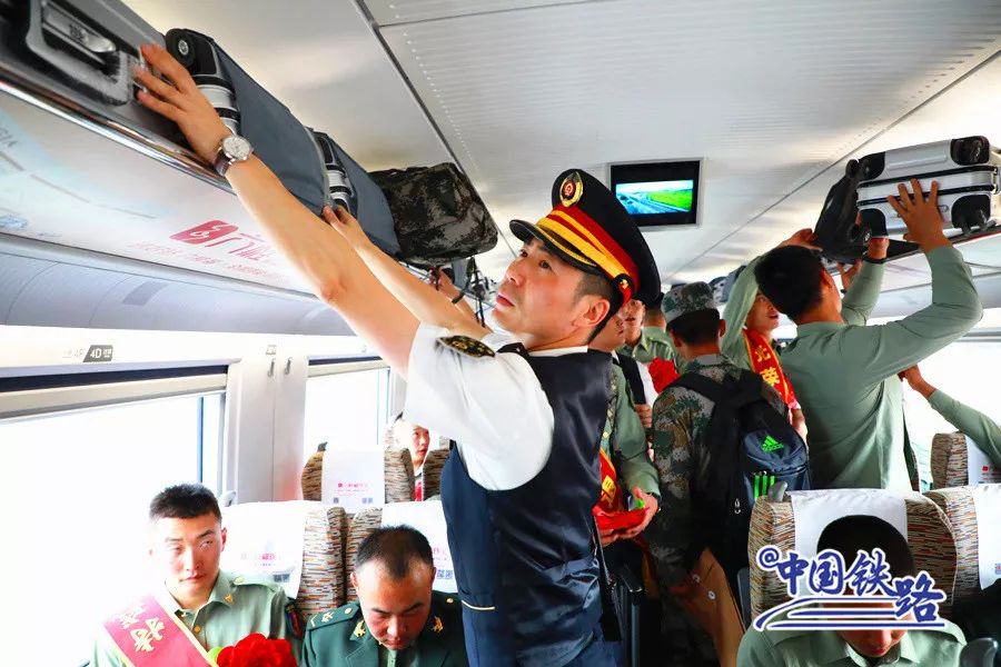 為做好哈牡高鐵、哈佳鐵路首次退役士兵運輸工作,中國鐵路哈爾濱局集團有限公司牡丹江客運段成立了退役士兵運輸領導小組, 在退役士兵乘坐的車廂內懸掛歡迎條幅,編寫歡送退役士兵廣播詞,在列車上播放軍旅歌曲,營造歡送退役士兵的良好氛圍。
