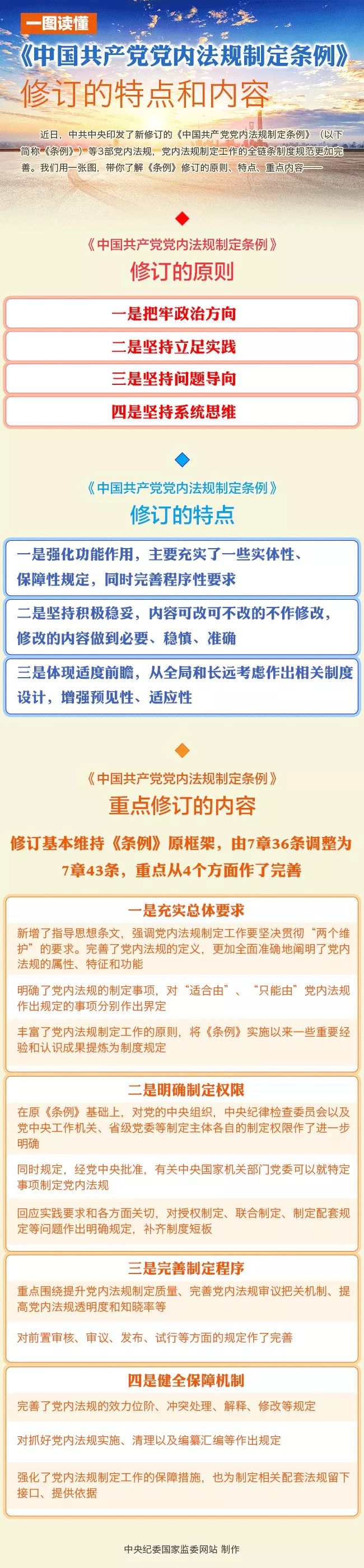 一圖讀懂《中國共產黨黨內法規制定條例》修訂重點內容