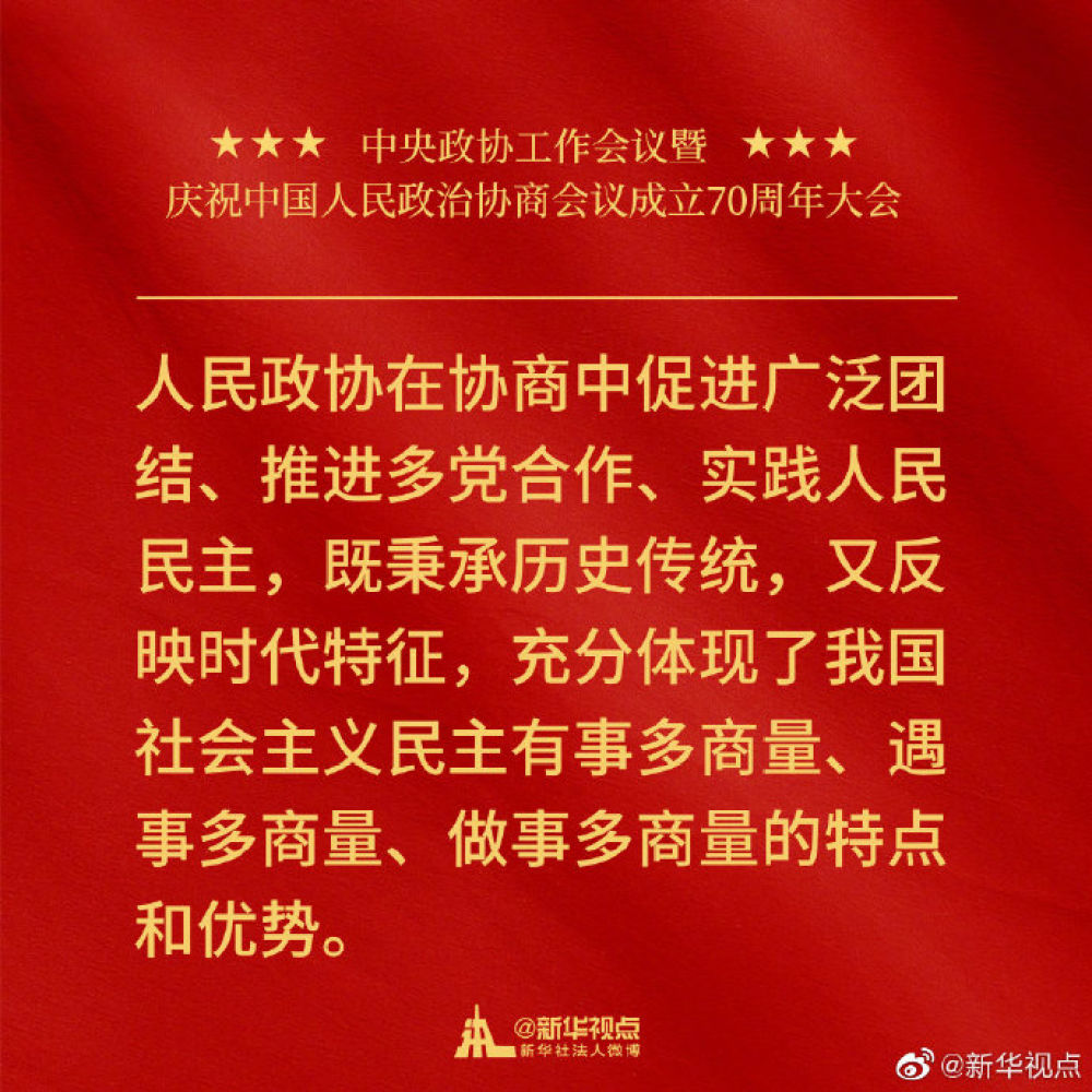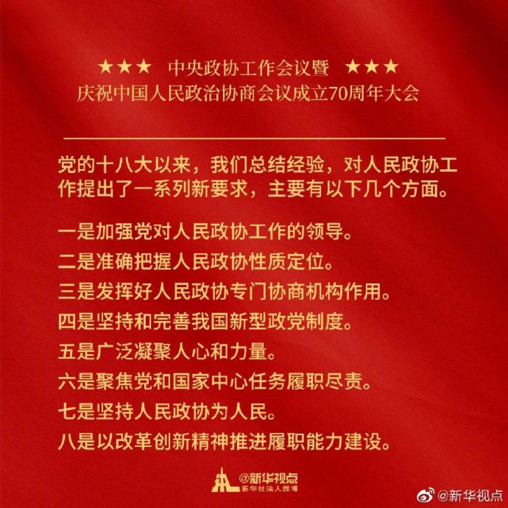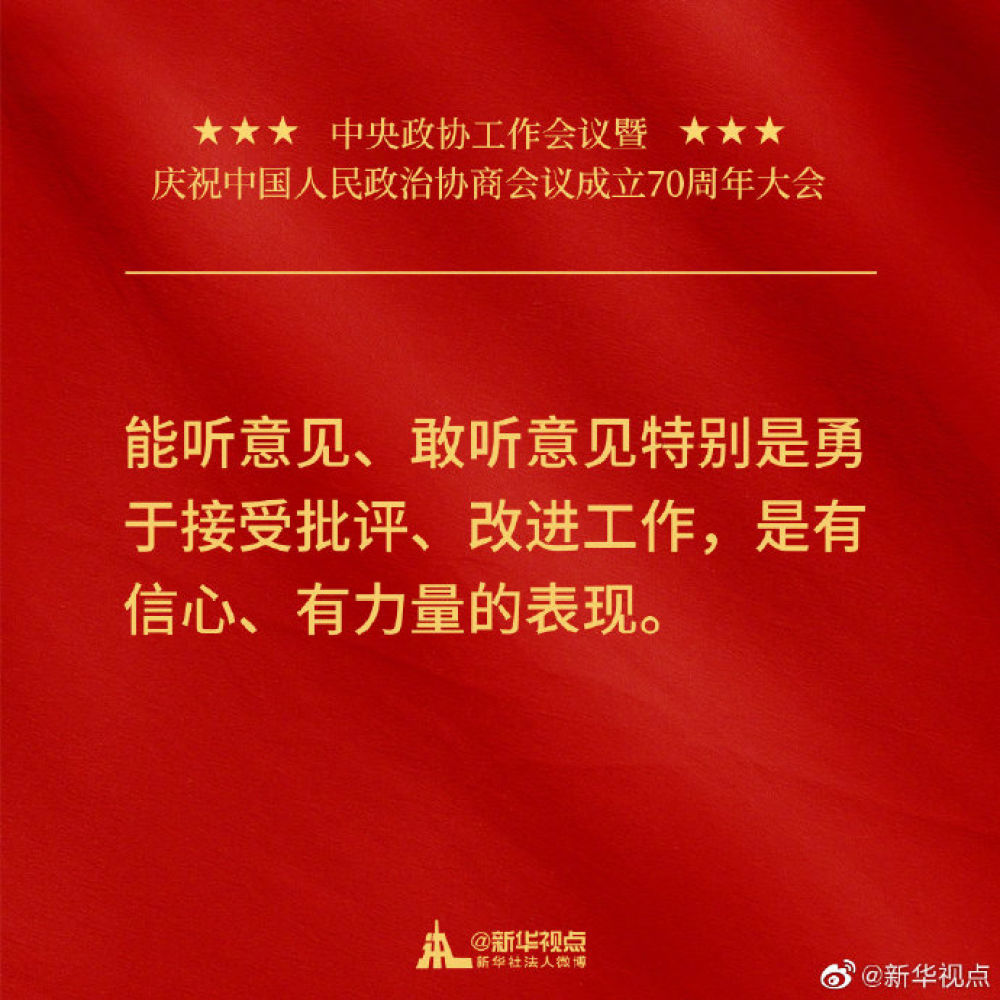 金句來了!習近平在中央政協工作會議暨慶祝中國人民政治協商會議成立70周年大會上的講話金句!