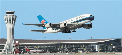 題圖 9月25日,中國南方航空公司由空客A380客機執(zhí)飛的CZ3001次航班從北京大興國際機場起飛。新華社記者 鞠煥宗攝