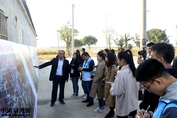 沈橋村黨委副書記的戴利偉向采訪團介紹村內整治情況。(中國臺灣網 尹賽楠 攝)