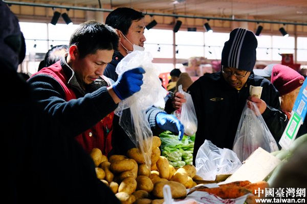 采購蔬菜。(中國臺灣網 劉川 攝)