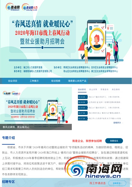 海口線上“春風(fēng)行動”暨就業(yè)援助月招聘會專題頁面