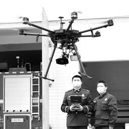 4月4日,湖北省十堰市鄖陽區(qū)消防救援大隊兩名消防操作員正在試飛新裝備的無人機。周家山攝/光明圖片