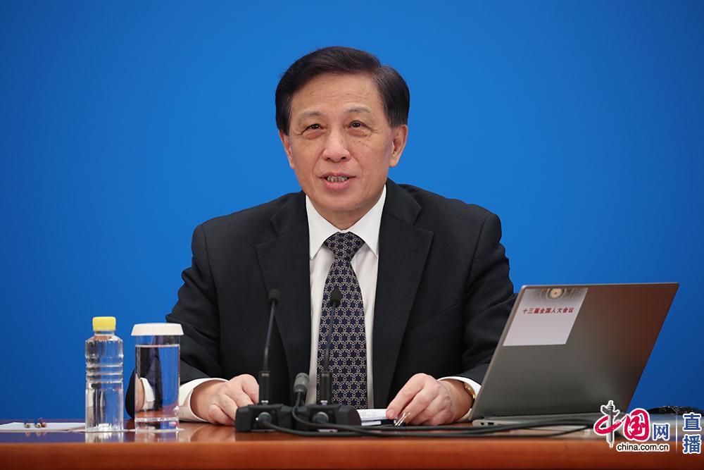 5月21日,十三屆全國人大三次會議在人民大會堂新聞發布廳舉行新聞發布會,大會發言人張業遂就大會議程和人大工作相關問題回答中外記者提問。中國網記者 楊佳攝