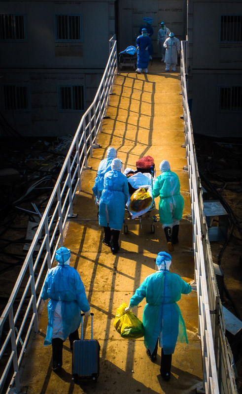 醫護人員走向武漢火神山醫院病房(2月4日攝)。新華社記者 肖藝九 攝