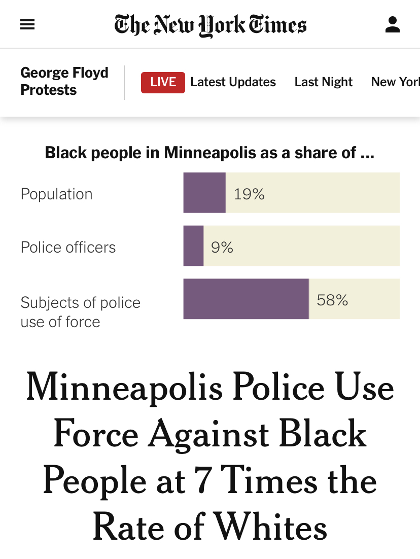 △《紐約時報》報道,明尼阿波利斯市警方對非裔使用武力是對白人的7倍