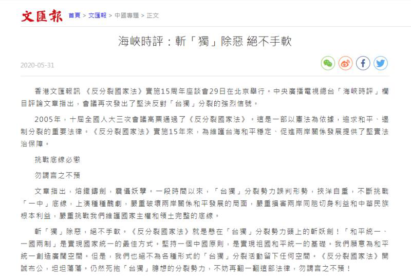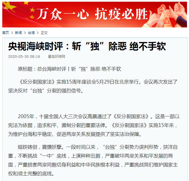 總臺海峽時評聚焦《反分裂國家法》實施15周年 抨擊“臺獨”分裂勢力引發海內外媒體廣泛關注