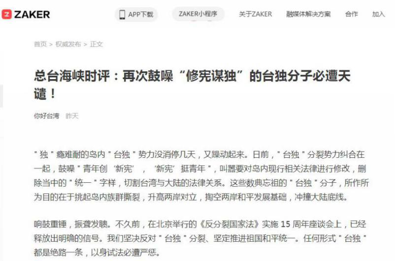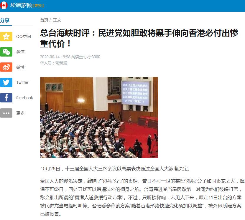 5月30日以來,結合社會各界聚焦《反分裂國家法》實施15周年,總臺《海峽時評》連續推出《斬“獨”除惡 絕不手軟》《民進黨當局若“以武拒統”就是自掘墳墓》《再次鼓噪“修憲謀獨”的臺獨分子必遭天譴!》《阻礙陸生回臺返校,民進黨當局自尋絕路》《當心臺海成為挑釁者的葬身地!》《民進黨如膽敢將黑手伸向香港必付出慘重代價!》等6篇評論,再次發出堅決打擊“臺獨”分裂勢力的最強音,引起海內外媒體的廣泛關注與認同。香港《文匯報》、《大公報》、鳳凰網、《澳門月刊》、新浪網、臺海網、ZAKER新聞等國內媒體,以及星島環球網、意大利僑網、歐聯華文網、《葡新報》、《非洲時報》等眾多海外媒體迅速轉載引用《海峽時評》文章,又一次形成揭批“臺獨”分裂勢力的輿論強勢。