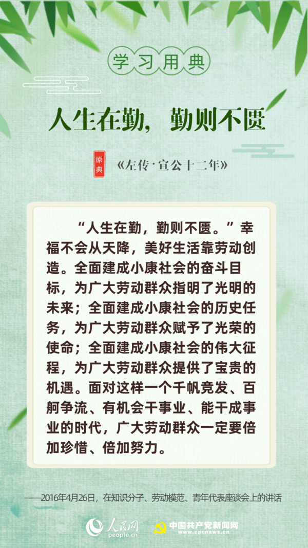 【編者按】“志不求易者成,事不避難者進(jìn)。”近日,習(xí)近平總書記給中國石油大學(xué)(北京)克拉瑪依校區(qū)畢業(yè)生回信,對廣大高校畢業(yè)生提出殷切期望。“人生在勤,勤則不匱”“積土而為山,積水而為海”……近年來,習(xí)近平多次引用詩句典故,激勵(lì)包含廣大青年在內(nèi)的全黨全國各族人民拼搏奮進(jìn)、埋頭苦干。正值“戰(zhàn)疫”“戰(zhàn)貧”關(guān)鍵時(shí)刻,人民網(wǎng)·中國共產(chǎn)黨新聞網(wǎng)與您一起回顧習(xí)近平講話中關(guān)于“奮斗”的10個(gè)名句。