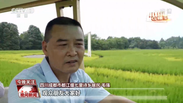 成都臺記者 姜瀾雨:迎著明媚的陽光,穿梭在現(xiàn)在近千畝的碧綠稻田里,不知道電視機前的觀眾朋友有沒有和我一樣感受到這個撲面而來的風吹麥浪的美妙的這樣的情緒。那其實我現(xiàn)在所在的位置呢,是在成都都江堰的七里詩鄉(xiāng)。那今天我來到這兒呢,不是單純的來看風景的,我是帶著任務來的,那就是沿著綠道找尋小康。不知道在這樣的美麗鄉(xiāng)村里,本地村民心目當中的小康生活又會是什么樣的呢?剛剛呢我們在鏡頭當中是聽到了有一位詩人在念詩,那其實呢,他不是其他人啊,他就是我們的本地村民,也是現(xiàn)在開著觀光車載著我的毛強毛大哥。來毛大哥,我們先跟觀眾朋友打一個招呼吧。