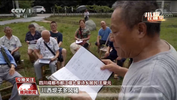 四川成都市都江堰七里詩鄉(xiāng)居民 毛強:對對對,因為我們這些農民就是閑下來的時候啊,他沒事做的時候就是會創(chuàng)作一些詩歌,還有詩詞之類的。