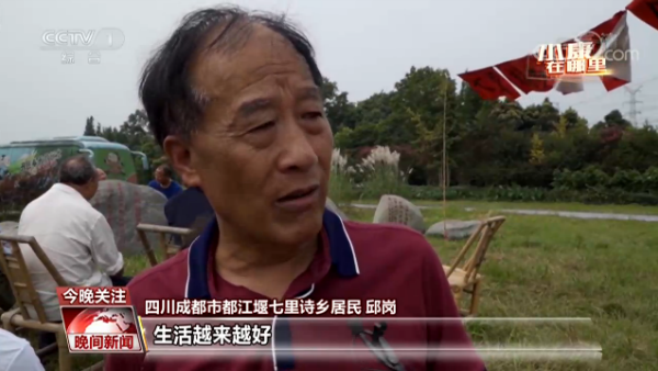 成都市都江堰七里詩鄉(xiāng)居民 邱崗:農民的生活水平提高了,生活越來越好。所以我們更多的老百姓要把他自己熱愛生活,熱愛家鄉(xiāng)的這么一個情感,通過他的詩歌創(chuàng)作來得到表達。