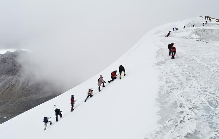 △10月5日,登山愛好者在西藏向洛堆峰峰頂進發。