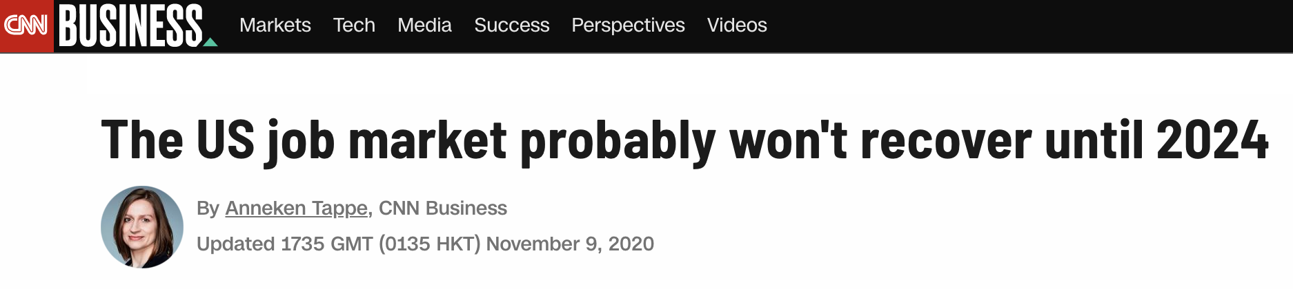 穆迪公司預測,在2024年之前,美國或將無法完全恢復因疫情而失去的2200萬個工作崗位。美國有線電視新聞網(CNN)稱,要想讓美國經濟復蘇,需要付出長時間的努力。