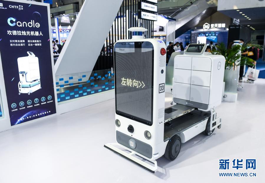這是11月11日在高交會現(xiàn)場拍攝的配送機器人。新華社記者 毛思倩 攝