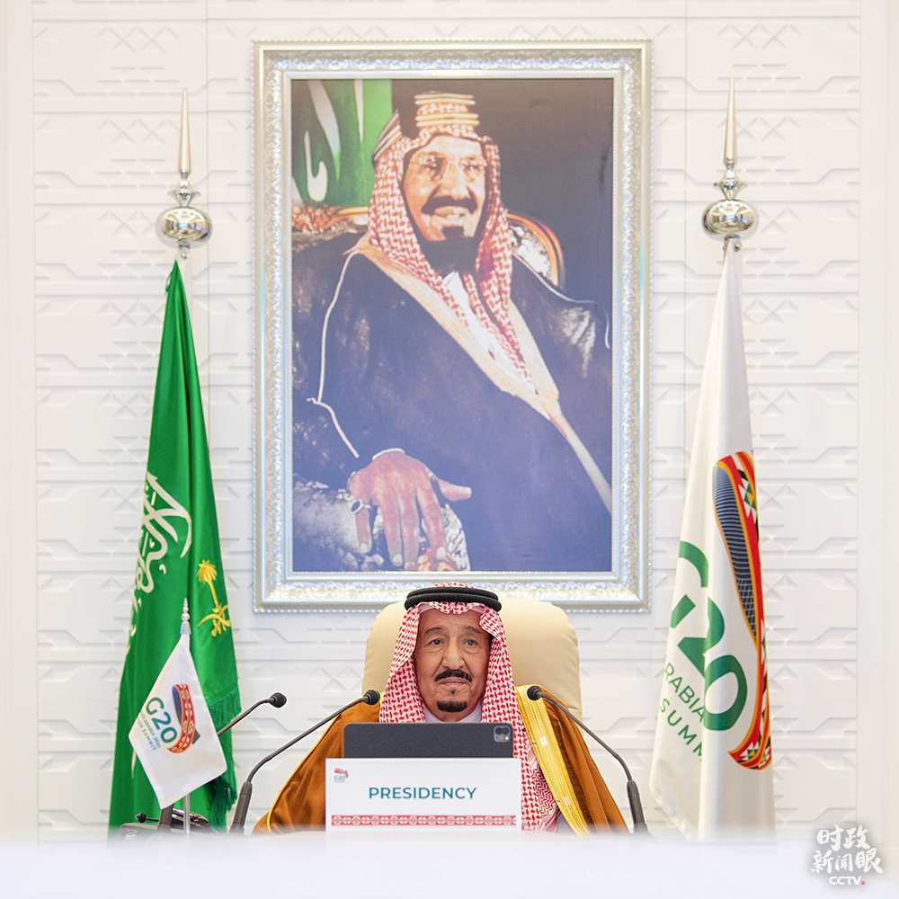 △沙特國王薩勒曼主持G20領導人第15次峰會第一階段會議。(來源于G20官方社交媒體)