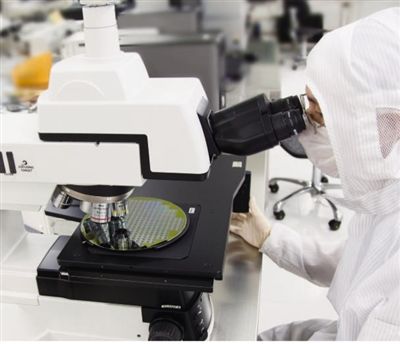 大立科技非制冷紅外焦平面探測器生產車間內,工作人員正在操作儀器設備。