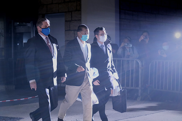 黎智英離開法院。(圖片來源:港媒)