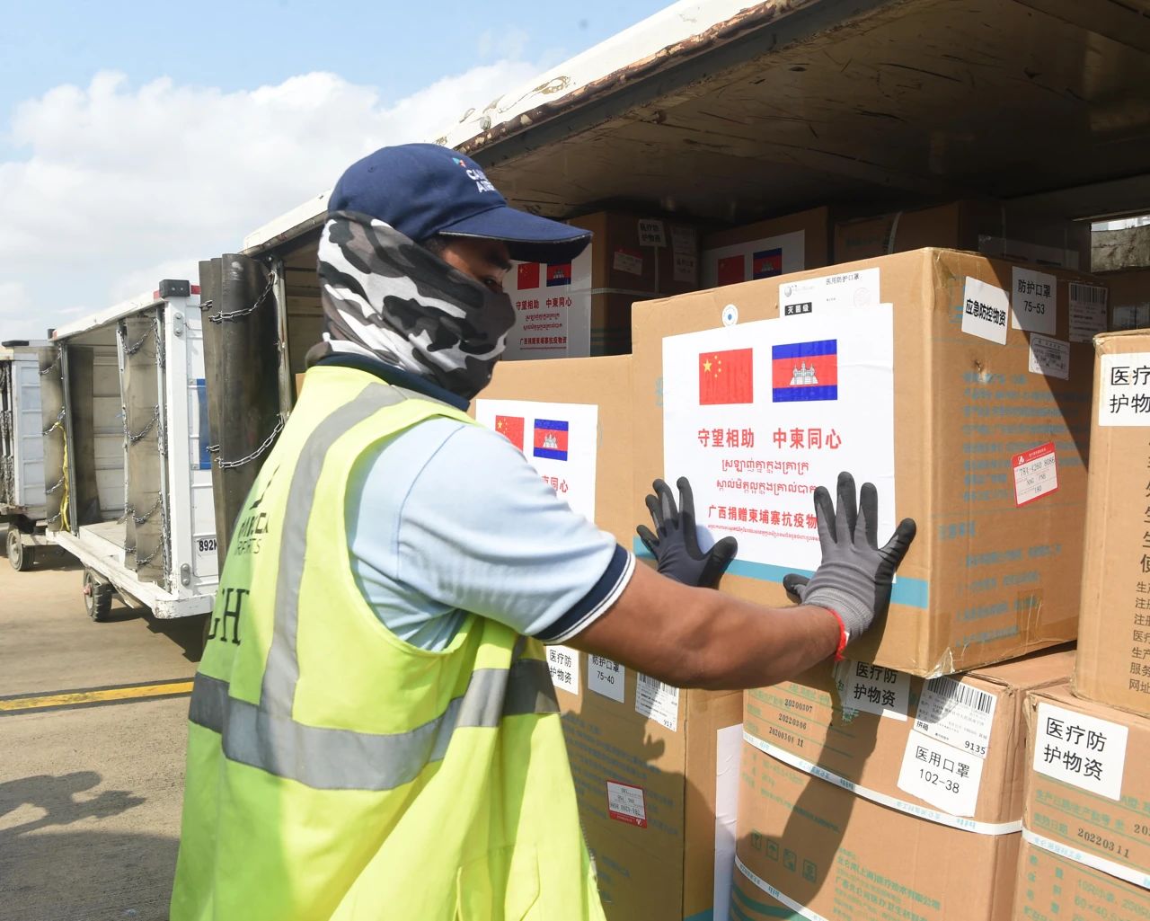 △2020年3月23日,一架搭載7名來自廣西壯族自治區醫療專家和一批防疫醫療物資的中國南航包機降落在柬埔寨首都金邊國際機場。