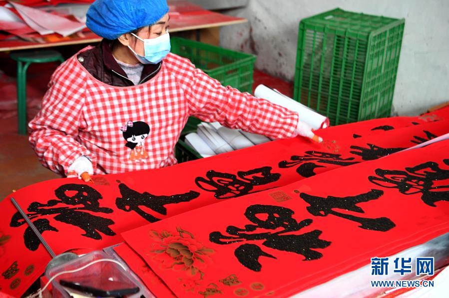 春節臨近,河南省焦作市溫縣趙堡鎮趙堡村的村民忙著趕制春聯,滿足訂單需求,供應年貨市場。趙堡村是當地春聯印制專業村,村民在家門口就可實現就業增收。