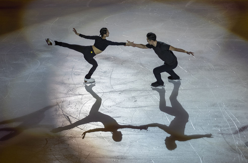 2020年11月8日,中國雙人滑組合彭程(左)/金楊進行表演。新華社記者 黃偉 攝