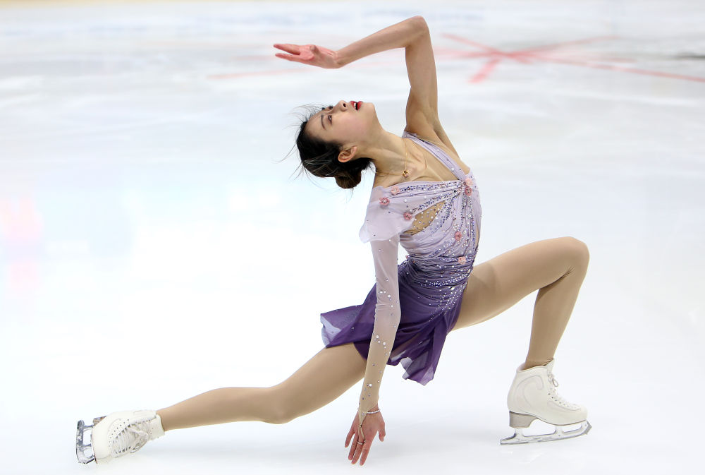 2021年1月1日,花樣滑冰——國家集訓隊團隊對抗賽在京舉行,圖為“精英隊”選手陳虹伊在女子單人滑短節目比賽中。新華社記者 雒圓 攝
