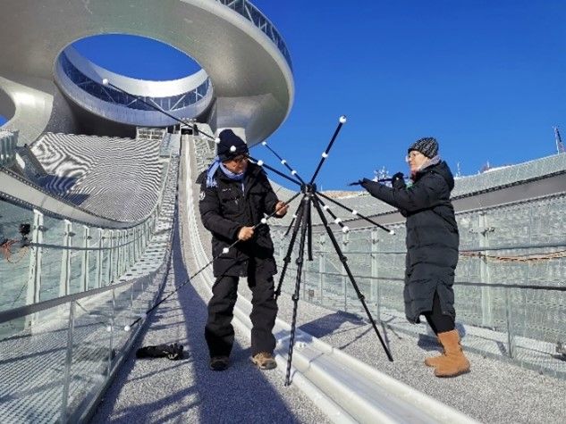 1月4日團隊初到國家跳臺滑雪中心,寒潮就給了來自南方的科研人員們一個“下馬威”。劉宇保存的一張手機截圖記錄了1月6日當地實時氣溫:下午4點,氣溫零下30攝氏度,體感溫度零下41攝氏度。大家工作完畢,第一件事就是集體外出買厚棉褲。