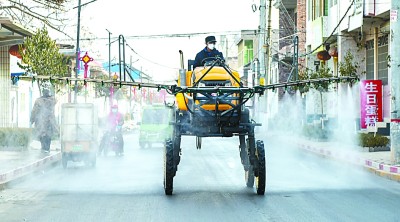 1月15日,工作人員使用農用噴霧機對石家莊市藁城區禪房村進行全面消殺。趙杰攝/光明圖片
