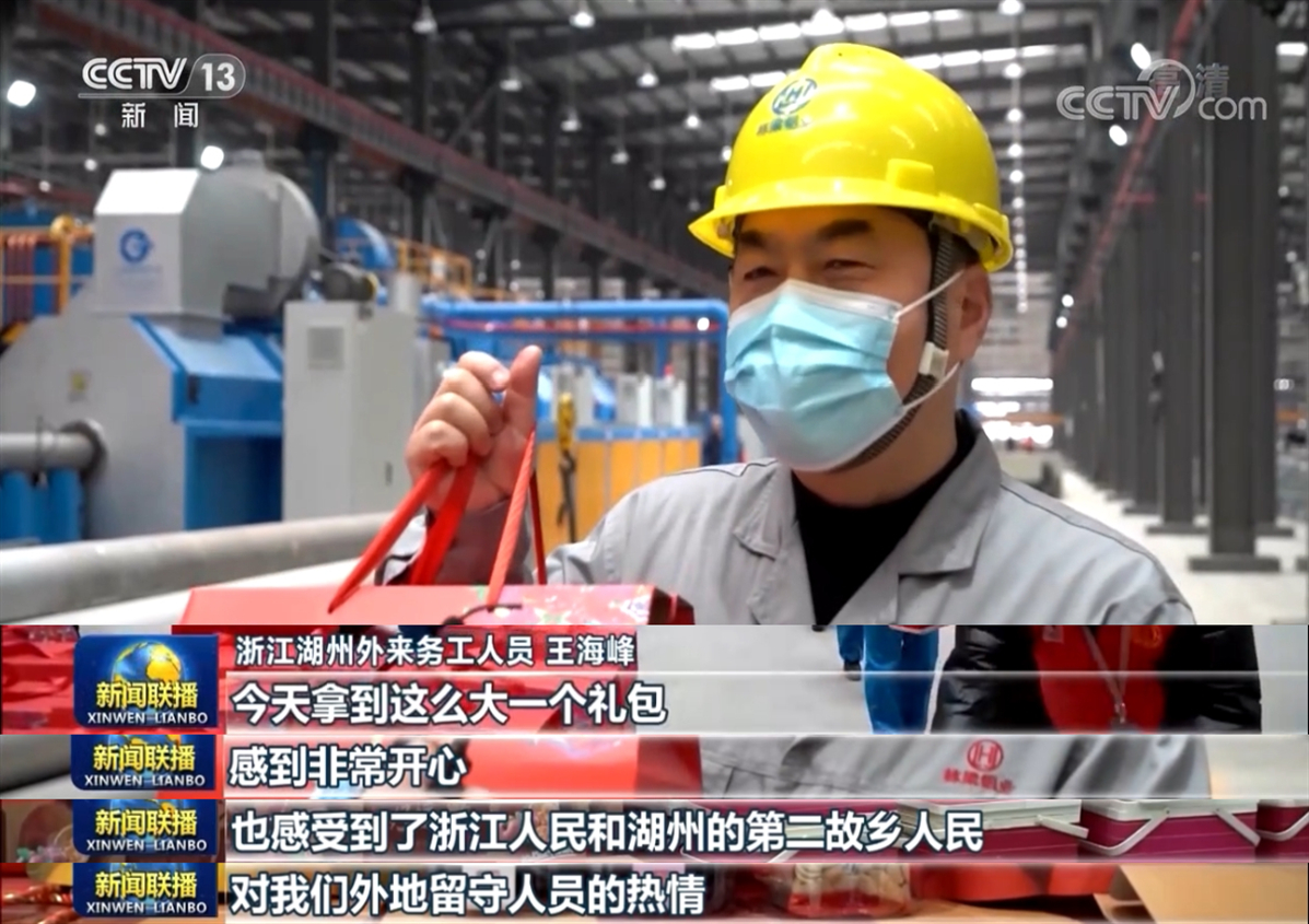 浙江外來務工人員較多。在湖州吳興區,當地在線上開設了湖州剪紙、美食制作等課程,大家可通過手機進行觀看;當地總工會還聯合企業一起為外地員工送上醬鴨、八寶飯、堅果等充滿年味的“大禮包”。