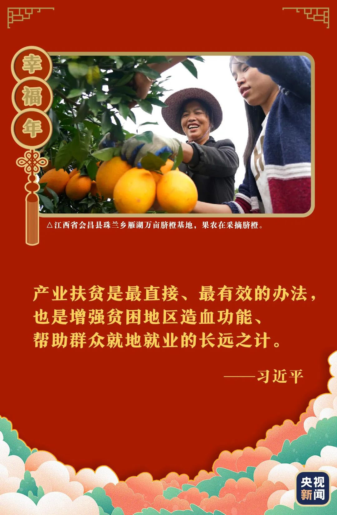 總書記帶來的幸福年,在穩穩的就業里,在增長的收入里,在扎實的保障里,在喬遷的新居里,在興旺的產業里,在農民的笑臉里……在脫貧后的新生活里。