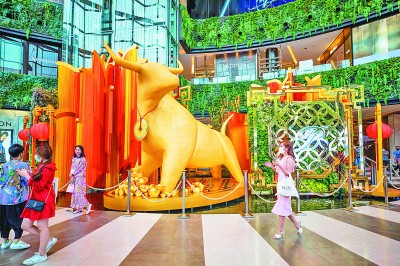 2月9日,顧客從泰國曼谷一家商場的春節裝飾旁經過。 新華社發