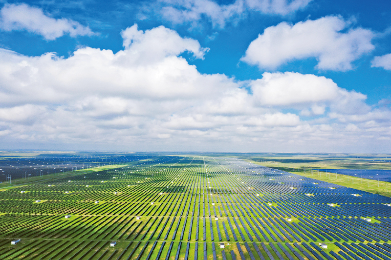 冬日暖陽下,青海省海南藏族自治州共和縣塔拉灘的光伏產業園區,600多平方公里的土地宛若披上一層藍色鎧甲,熠熠生輝。荒漠戈壁變為“藍色海洋”,貧困群眾喜添“陽光收入”。更令人驚喜的是,在光伏板的遮擋下,荒灘上的草又長了起來。村民馬生建說,如今他不僅有光伏發電收入分紅,還能去園區放羊,每月能掙約3000元。