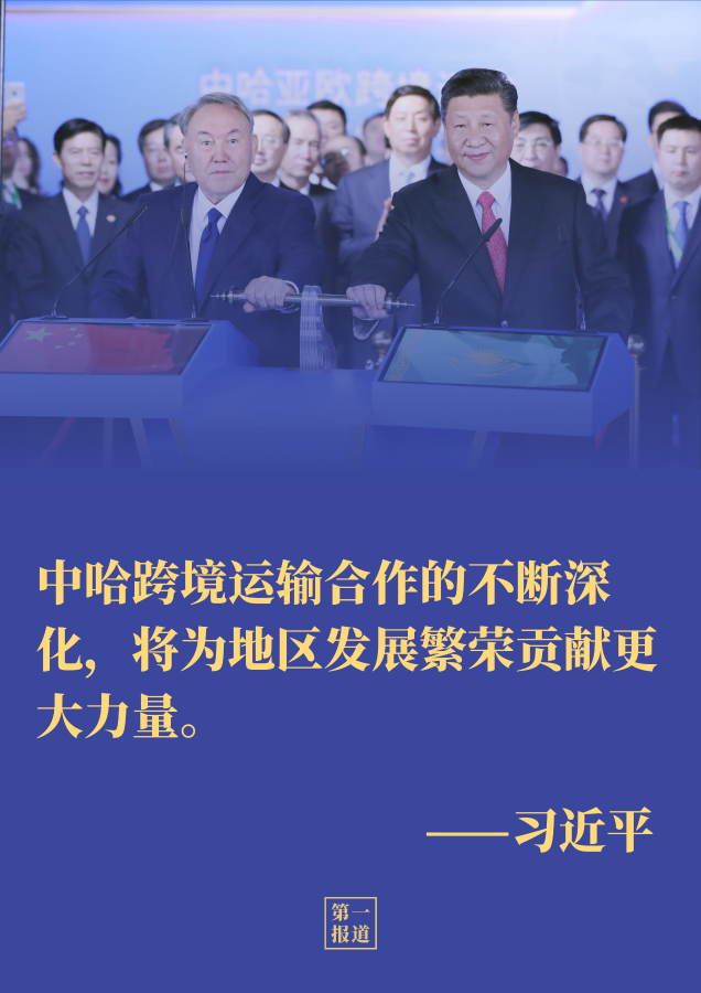 2017年6月8日,習近平主席在訪問哈薩克斯坦期間出席中哈亞歐跨境運輸視頻連線儀式,現(xiàn)場先后連線中哈連云港物流合作基地和“霍爾果斯-東大門”經(jīng)濟特區(qū)無水港。