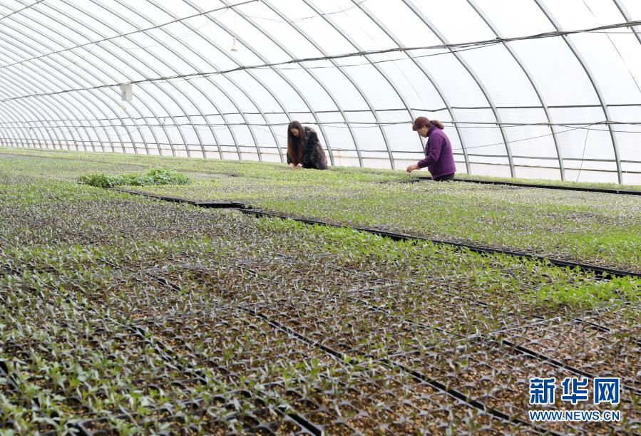 2月28日,甘肅省臨夏回族自治州永靖縣三塬現(xiàn)代農(nóng)業(yè)園區(qū)的工人在管護(hù)蔬菜秧苗。