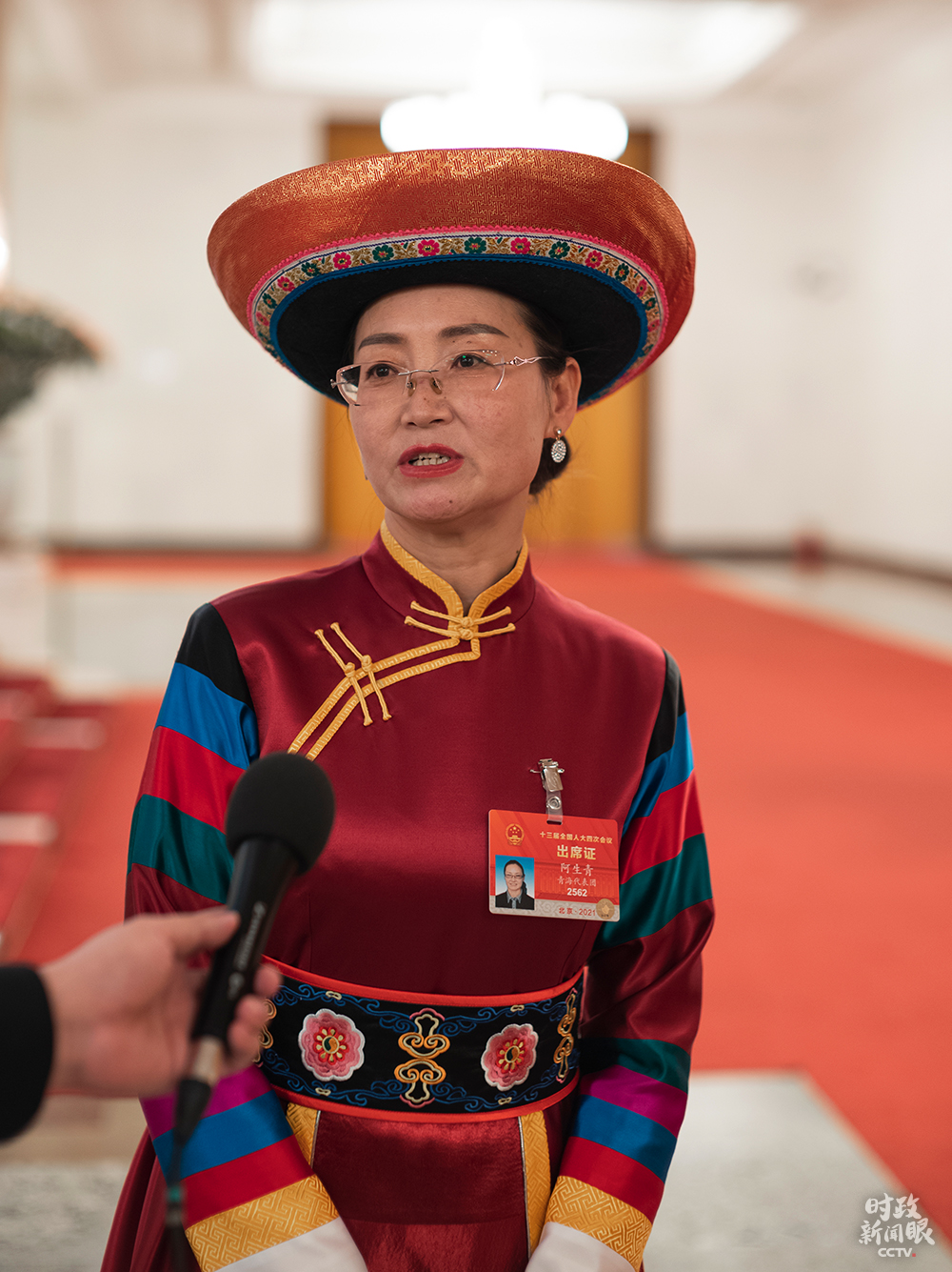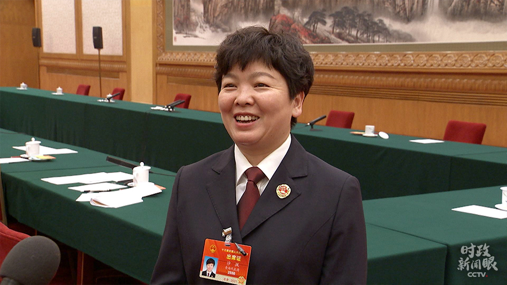 △沙沨代表在當天的發言中,建議將基層治理以法治化手段實現,一站式服務讓百姓少跑路。(總臺央視記者張曉鵬拍攝)