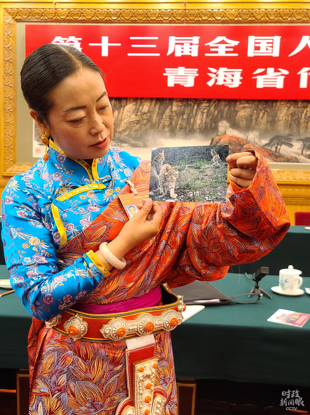 孔慶菊是一名從小生長在祁連山腳下的人民教師,她在發言時談起這些年祁連山生態之變。孔慶菊特意帶了幾張照片上會。她說,以前偶爾能見到的雪豹和荒漠貓,現在已經頻繁出現!吧鷳B管護更嚴了,綠水青山回歸了!