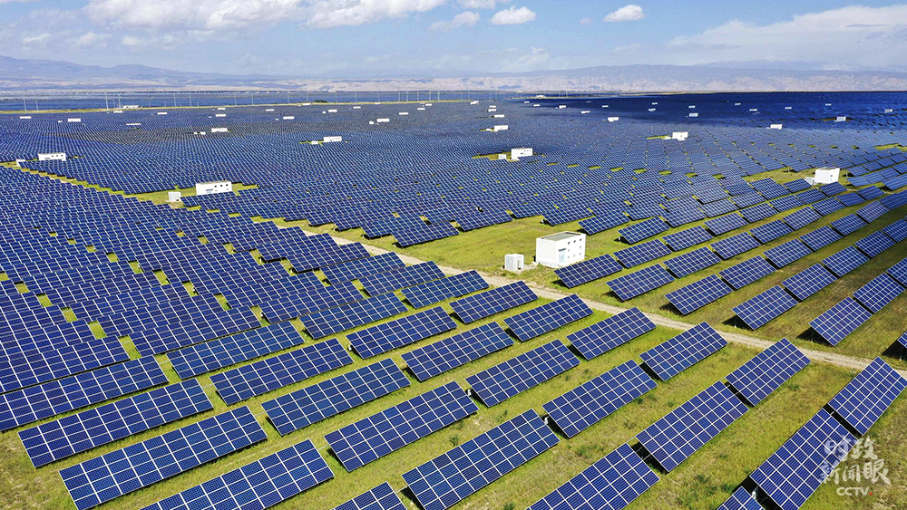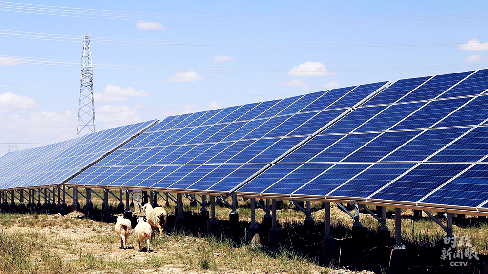 △這是位于青海省海南藏族自治州的塔拉灘光伏產業園區。在光伏板的“庇護”下,草場逐漸恢復,羊群也回來了,經濟和生態效益雙豐收。