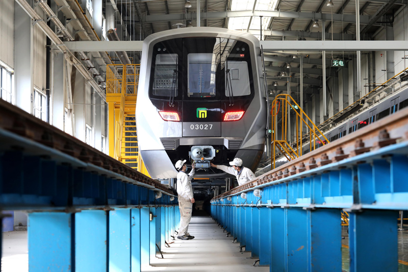 2月22日,在位于河北省石家莊市欒城區的中車齊車集團石家莊公司,工人在進行地鐵車輛調試。新華社發(梁子棟 攝)