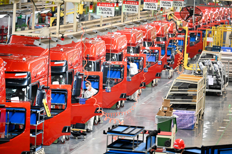 2月22日,在廣西柳州一家商用車企業,工人在生產線上忙碌。新華社發(黎寒池 攝)