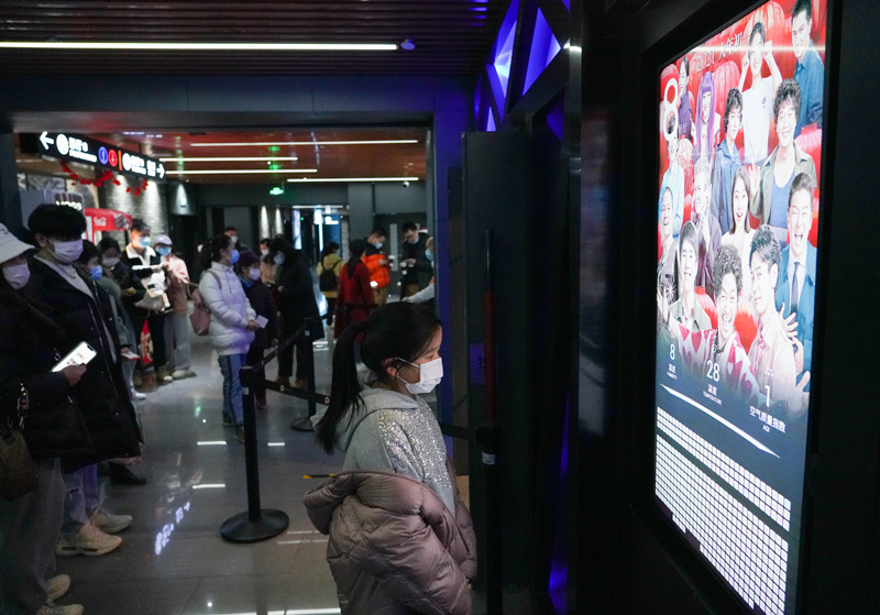 2月17日,觀眾在北京前門的保利國際影城影廳外等待進場。截至2月17日17時,2021年春節檔電影票房達75.44億元,繼2019年59.05億元后,再次刷新春節檔全國電影票房。同時創造了全球單一市場單日票房、全球單一市場周末票房等多項世界紀錄。新華社記者 陳鐘昊 攝